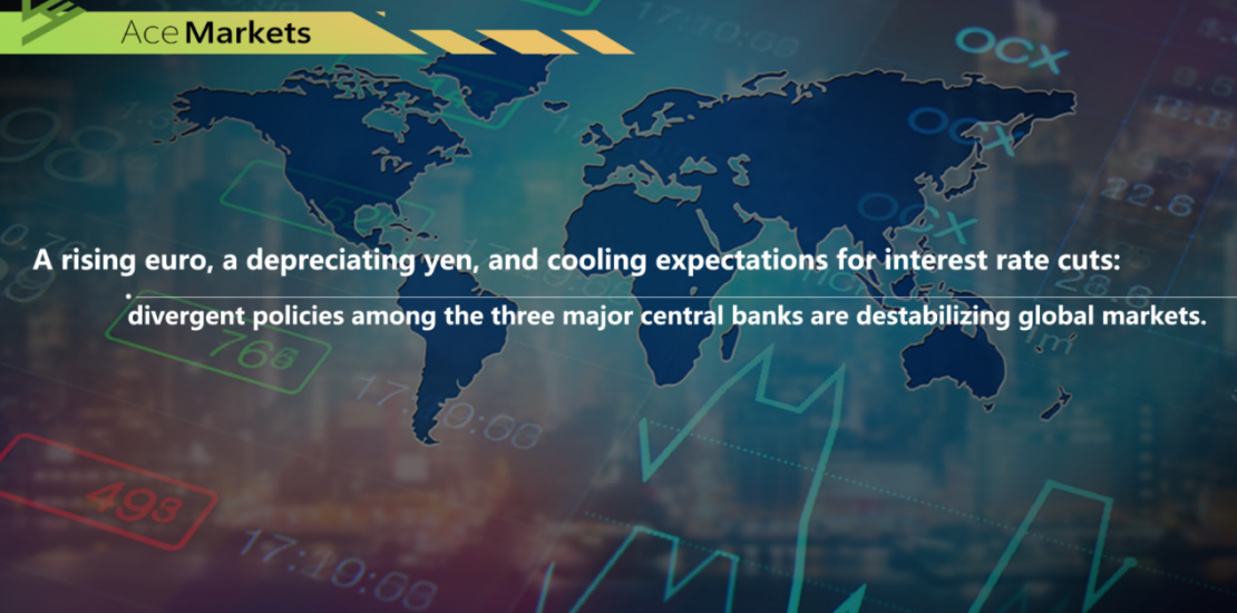 A rising euro, a depreciating yen, and cooling expectations for interest rate cuts: divergent policies among the three major central banks are destabilizing global markets